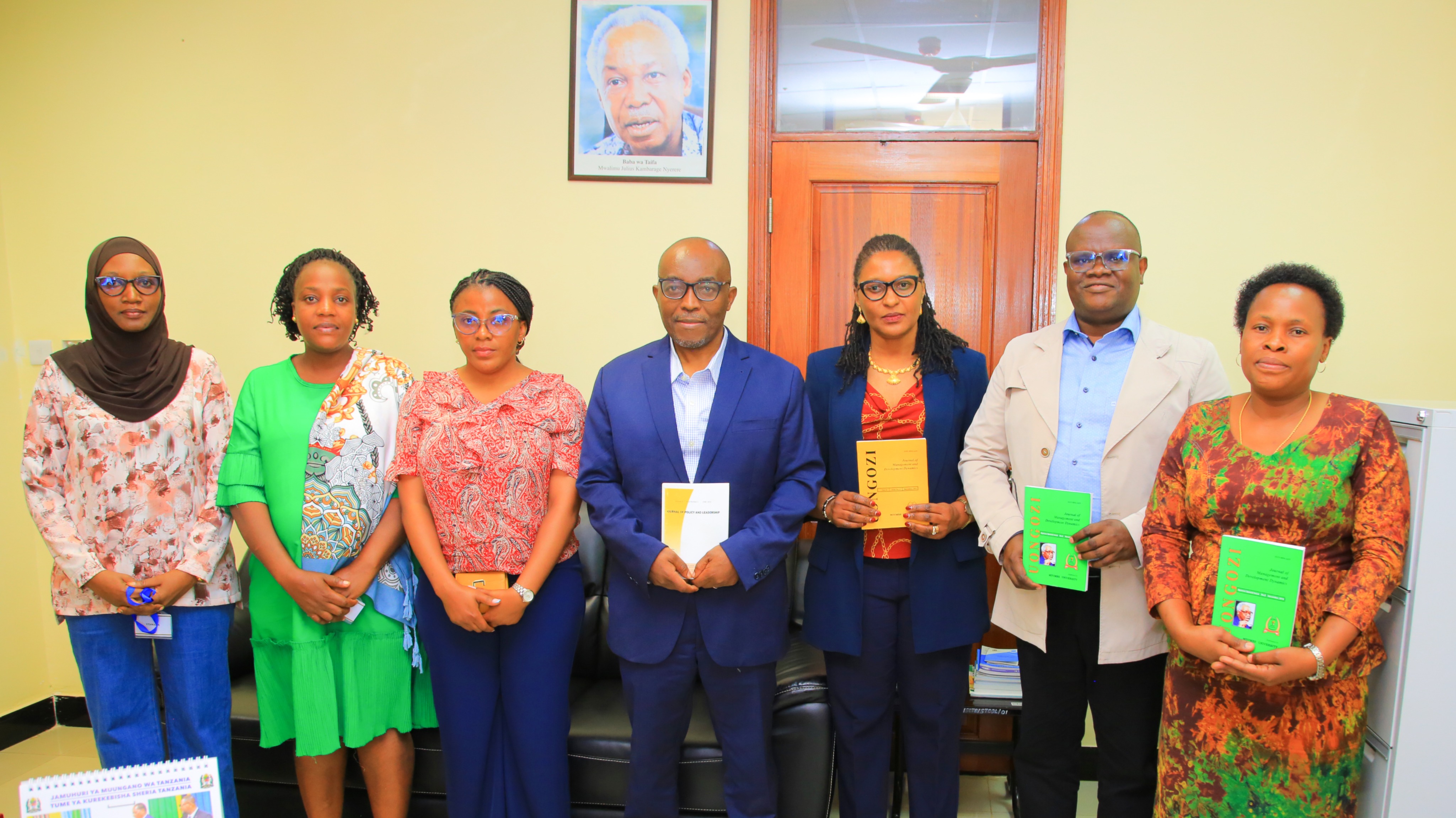 Katibu Mtendji wa Tume ya Kurekebisha Sheria Tanzania, George Mandepo na baadhi ya viongozi wa Tume hiyo wakiwa na wageni kutoka Chuo Kikuu Mzumbe na Chuo cha Serikali za Mitaa Hombolo Dodoma walipotembelea ofisi za Tume hiyo tarehe 29 Julai 2025